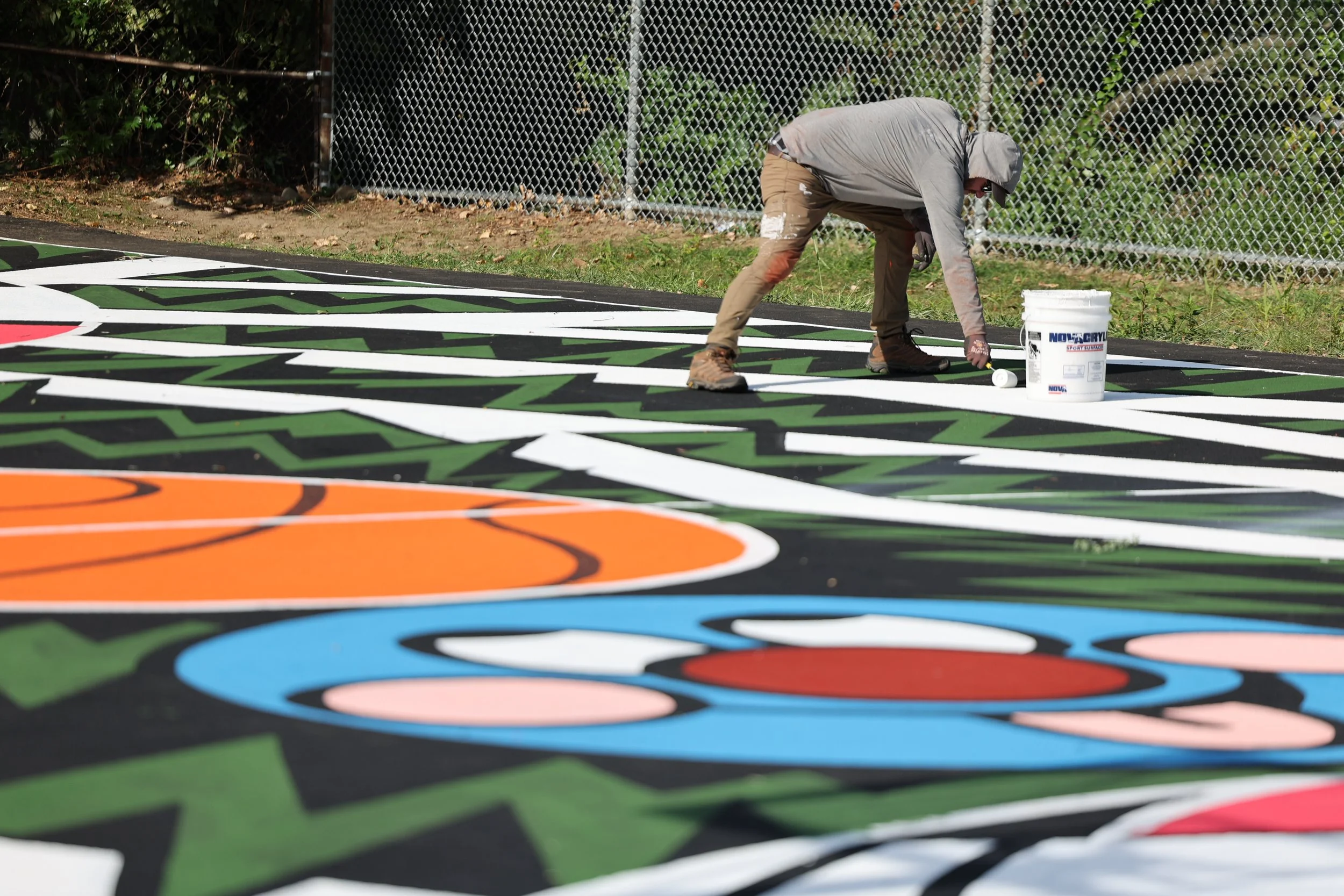 At a public launch on September 19th, 2025, My HomeCourt and Providence Parks, will unveil a newly refurbished and designed sports courts at the James Ahern Park on Providence’s west side. The renovated basketball courts will feature a court mural designed by the nationally renowned artist Trenton Doyle Hancock.